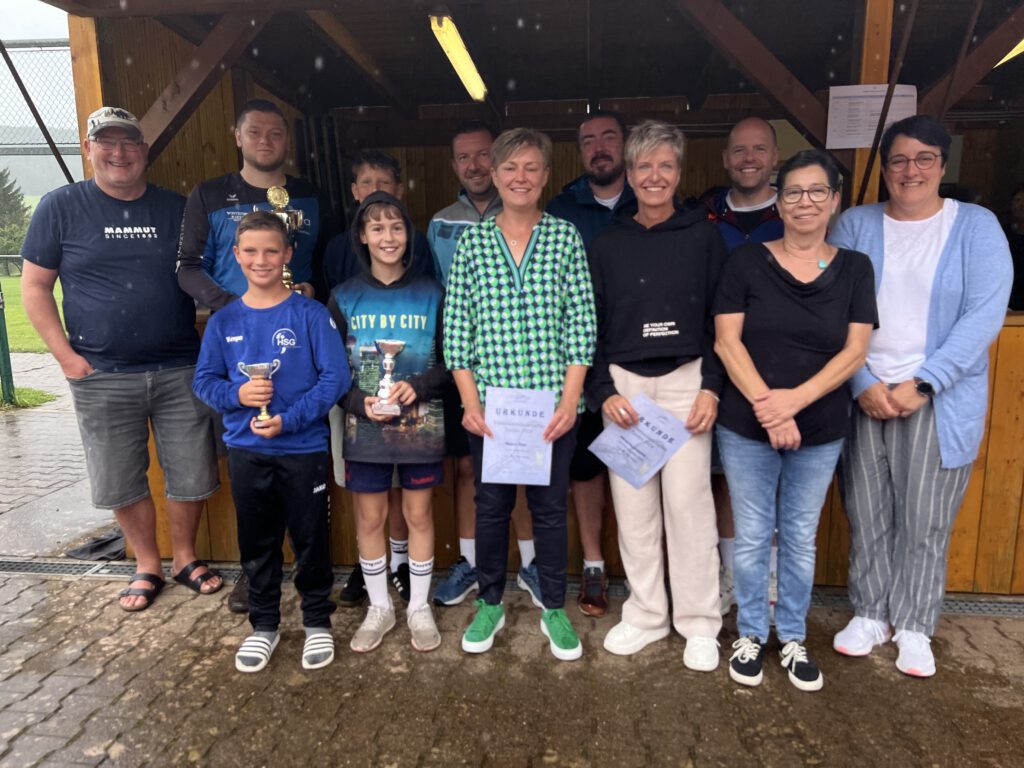 Bei einsetzendem Regen dankte Abteilungsleiter Andreas Ackermann im Rahmen der Siegerehrung den zahlreichen Zuschauern und Akteuren für Ihre Teilnahme und den überaus fairen und spannenden Spielen. Anschließend überreichte er zusammen mit dem Vereinsvorsitzenden Achim Grüner die Pokale und Sachpreise. Abschließend bedankte er sich noch bei den vielen Helfern und Organisatoren für ihre tatkräftige Unterstützung, die zu einem reibungslosen Ablauf der Meisterschaften beigetragen haben.