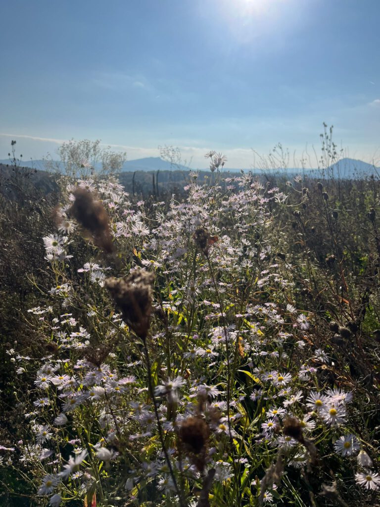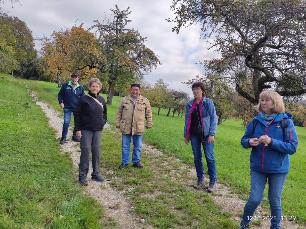 Nur eine kleine Gruppe von 7 Wanderer waren es welche einen wunderschönen Sonntagnachmittag erlebten. Das Wetter konnte nicht besser sein. Bittelbrunn ist ein sehr schönes Dorf inmitten von Streuobstwiesen mit wirklich kleinen Schmuckstücken, wie einem bemalten Fachwerkhaus, schönen Brunnen, einer alten Kirche und immer wieder Aussicht auf die Vulkanberge.
