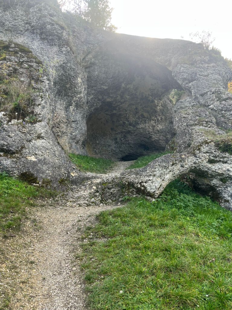 Vom Parkplatz bei der Gemeindehalle am Ortseingang wanderten wir zunächst hinunter zum Eiszeitpark. Auf mehreren Infotafeln am Petersfelsen konnten wir uns ein Bild machen wie es hier vor ca. 15000 Jahren zuging. Der Petersfelsen war eine Jagdstation von Rentierjägern. Wenn die Rentierherden im Herbst über die Hegaualb in schneeärmere Gebiete zogen, passierten sie auch das Brudertal das sich hier verengt. In die Gnirshöhle konnten wir leider nur durch ein Gitter hineinschauen. Im weiteren Verlauf des Tals kamen wir an einem schönen Teich vorbei bevor es wieder durch herrlich bunten Laubwald hinauf auf die Höhe ging. Wir hatten es nicht eilig sondern genügend Zeit zum Verweilen in der Sonne. Der Schlussteil führte wiederum durch idylische, dörfliche Landschaft bis zum Gasthaus Rigling welches immer noch Weilheimer Bier ausschenkt. Hier wurde bei einem Wurstsalat die Wanderung beendet.